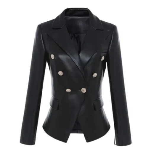 Katerina Black Faux Leather Blazer