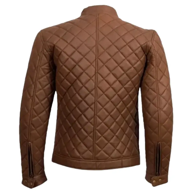 Men Brown Quilted Leather Jacket