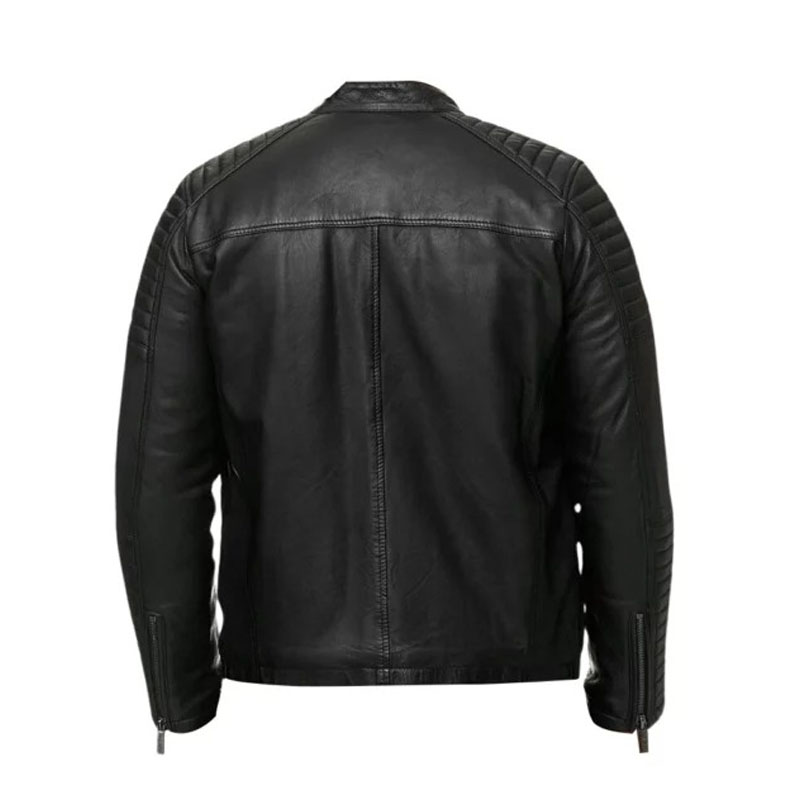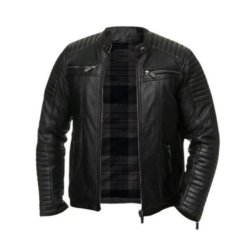 Men Quilted Biker Black Jacket