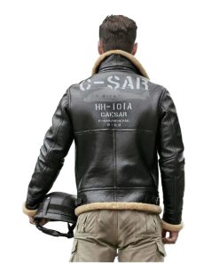 Mens Motorcycle Shearling Fur Leather Jacket Coat