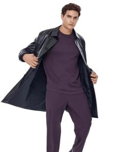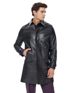 Men’s Real Black Leather Shirt Style Coat