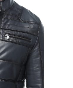 Men’s Real Navy Leather Bomber Jacket - Super Star Jackets