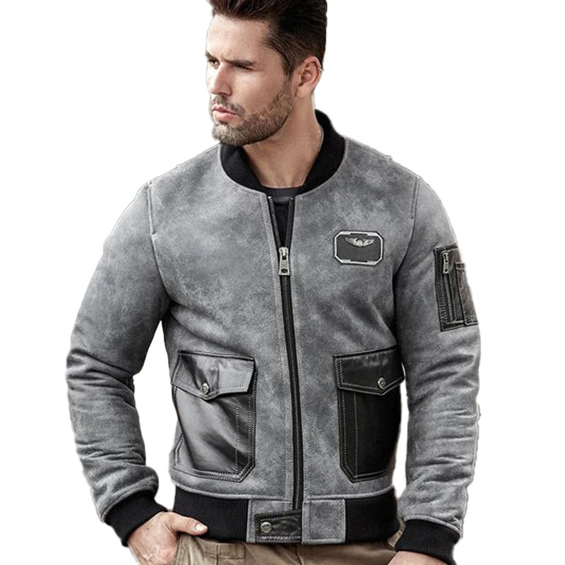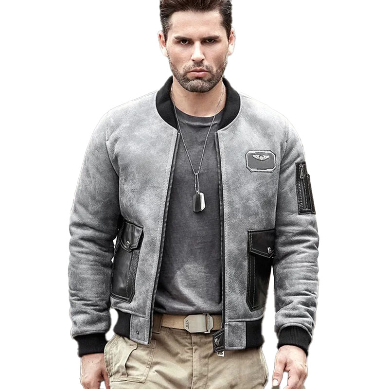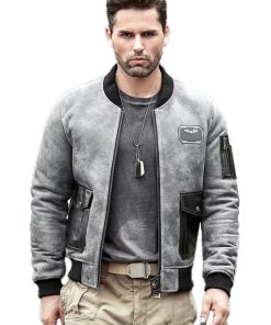 Mens Shearling Motorcycle Leather Bomber Jacket