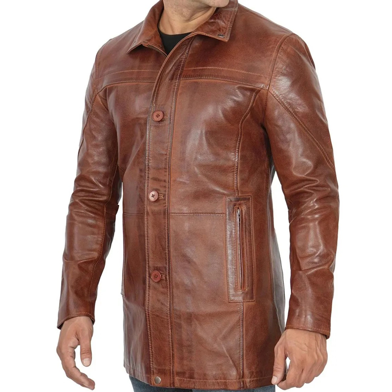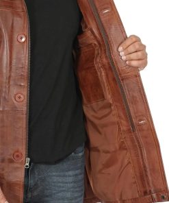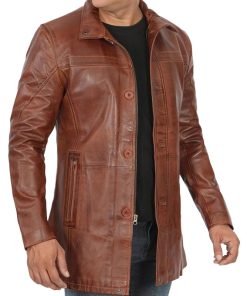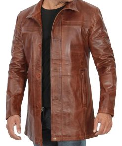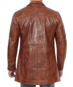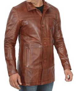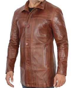 Men’s Vintage Cognac Leather Car Coat