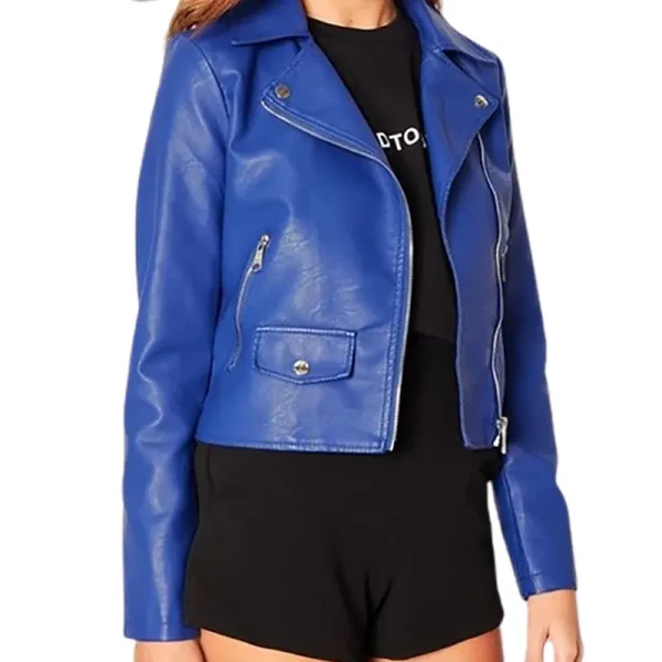 Women Biker Blue Leather Jacket
