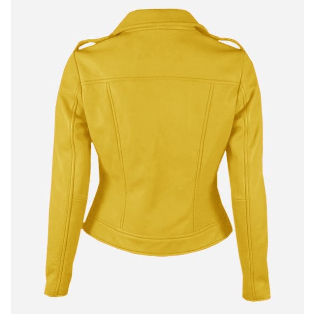Women Yellow Quilted Stylish Premium Leather Jacket