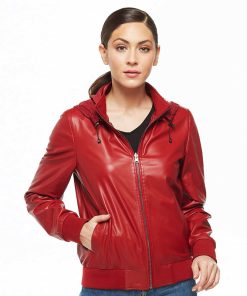 Women’s Real Red Leather Bomber Jacket - Super Star Jackets