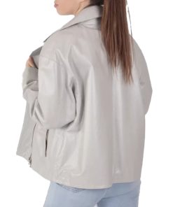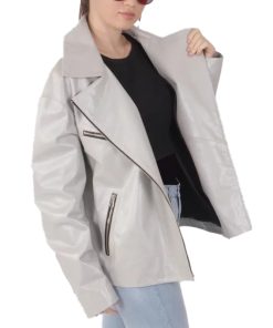 Women’s White Leather Biker Jacket